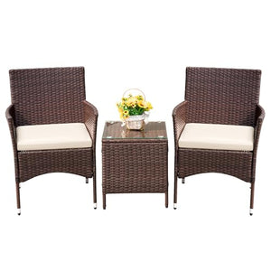Devoko Patio Porch Furniture Sets 3 Pieces PE Rattan Wicker Chairs with Table Outdoor Garden Furniture Sets (Brown/Beige)