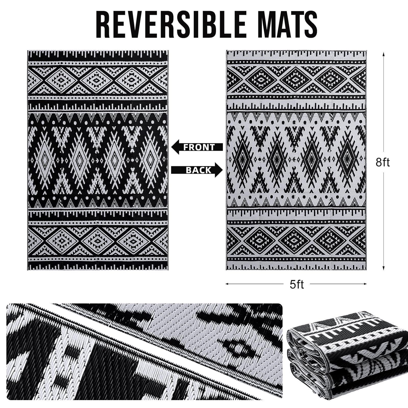 - REVERSIBLE & VERSATILE: Our outdoor patio rug features a reversible design with modern geometric patterns on two sides. The versatile two-sided construction allows you to refresh your space in an instant. Applicable to patio, RV, porch, deck, backyard, camper, balcony, picnic, tent, trailer.