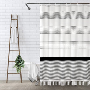 Awellife Black and White Shower Curtain for Bathroom Stripe Tassel Shower Curtain 72 X 72 Inches Farmhouse Linen