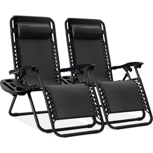 Best Choice Products Set of 2 Adjustable Steel Mesh Zero Gravity Lounge Chair Recliners w/Pillows and Cup Holder Trays, Black