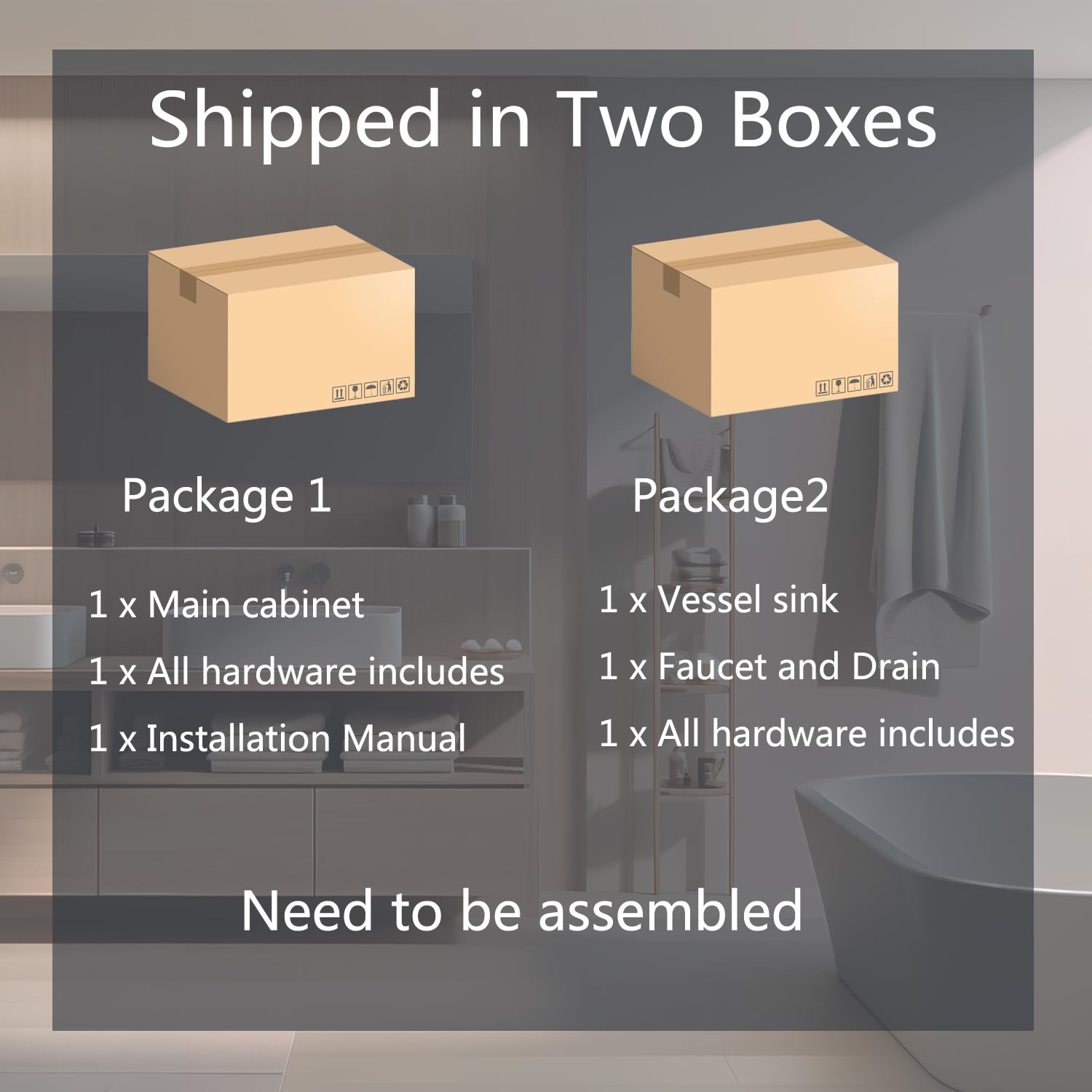 • - Come with Vanity, Ceramic sink, Faucet, Pop up drain, Hot/ cold lines, and some mounting hardware;