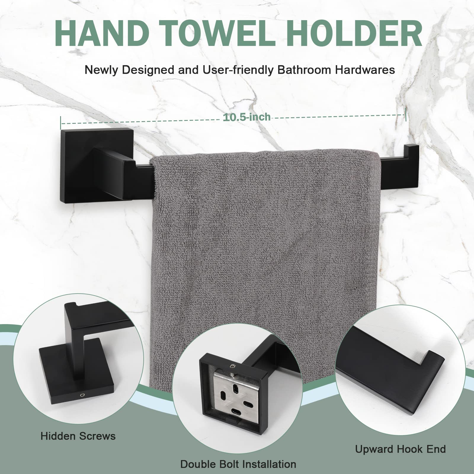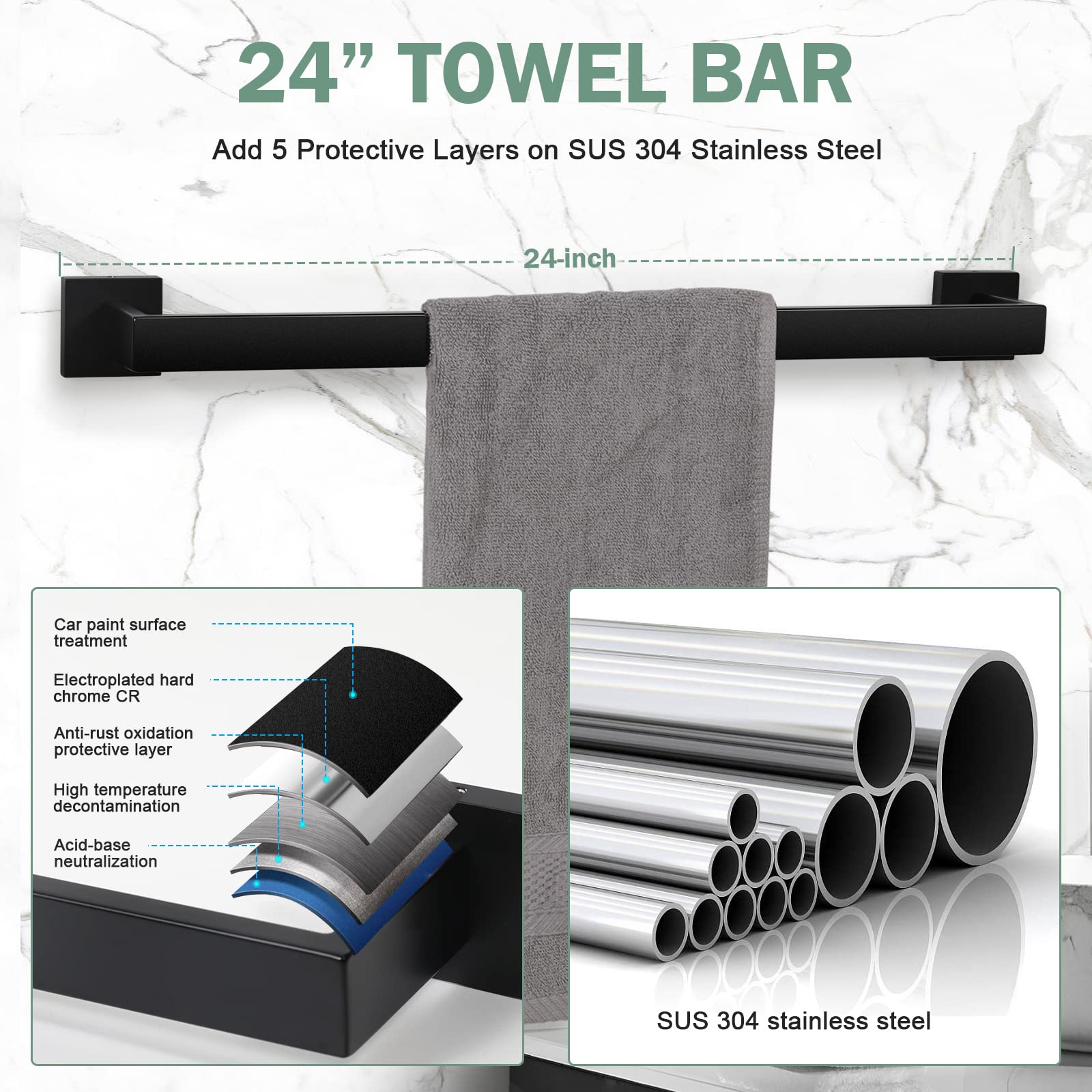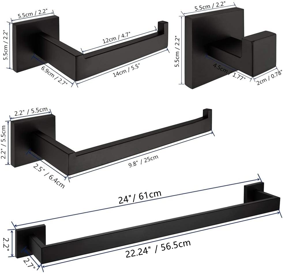 - MODERN & SAFE DESIGN - Designed with clean lines and sturdy construction, the bathroom hardware accessory sets provide everyday efficiency with style. Unique squared shape and concealed mounting hole add a touch of modern design to your bathroom, chamfering edges protect your body from scratching.