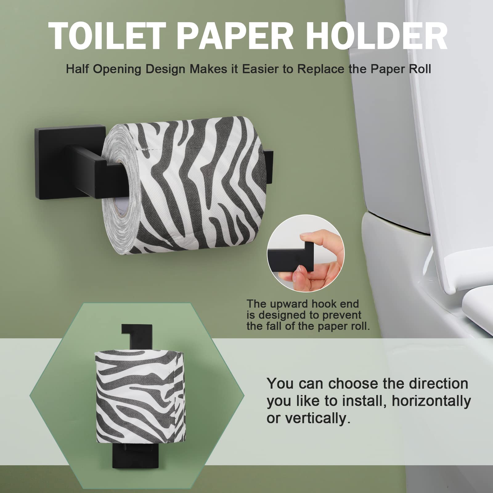 - SPACE-SAVING TOWEL BAR - The square hook is a handy place to store your robe or towel between showers, the toilet paper dispenser can offer excellent support to a roll with a maximum length of up to 4-3/4". The towel ring and towel bar are handy places to store your towels and washed clothes that keep your towels dry and within reach.