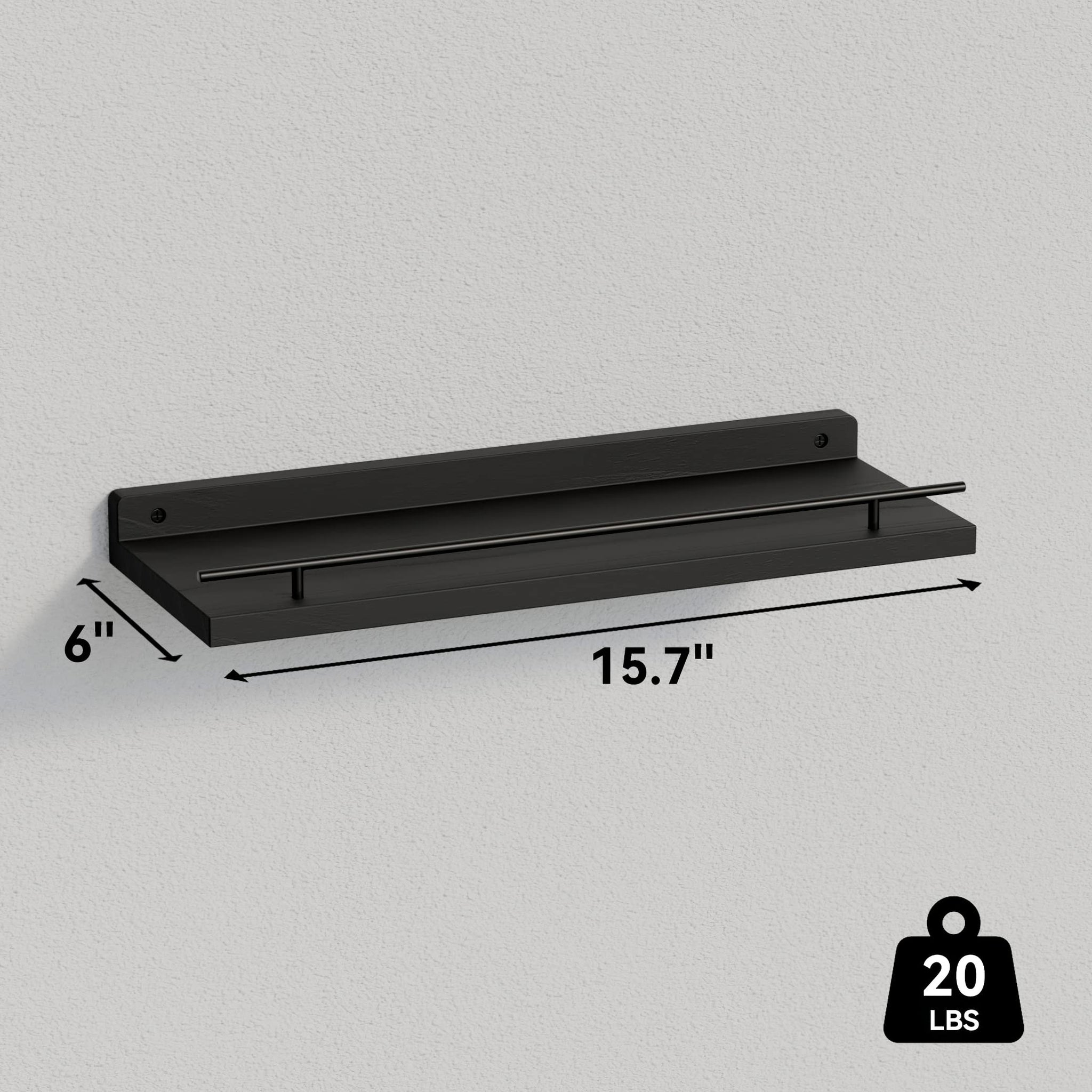 - 【Install Without Any Worries】 - Packing List: 1 clear installation guide, 3 shelf boards, 3 metal guardrails, some circular pads and hardware. Each shelf board has pre-drilled holes, it only takes a few minutes to follow the instructions and complete the mounting, then you can curate your own display for wall. Shelf dimension: 15.7 inch L x 6 inch W. If there's any problem concerning installation, please contact us via Amazon immediately, WOPITUES customer service team is always here for you.