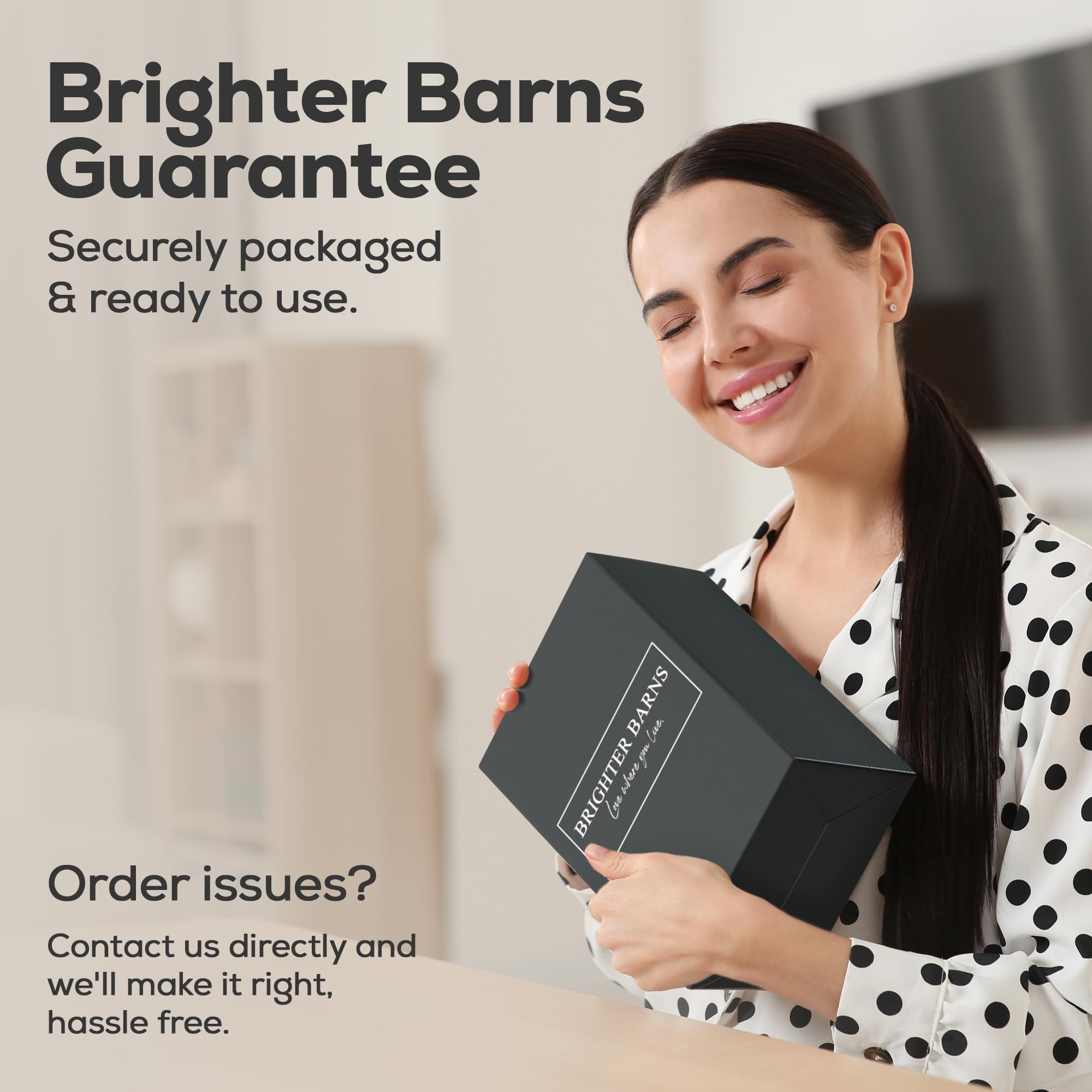 - NO HASSLE, BRIGHTER BARNS GUARANTEE: We stand by our products and a best-in-class customer experience. Feel confident knowing our customer service team is always ready to help, responding to any messages in less than 12 hours. Trust Brighter Barns for a hassle-free experience where your satisfaction is our top priority.