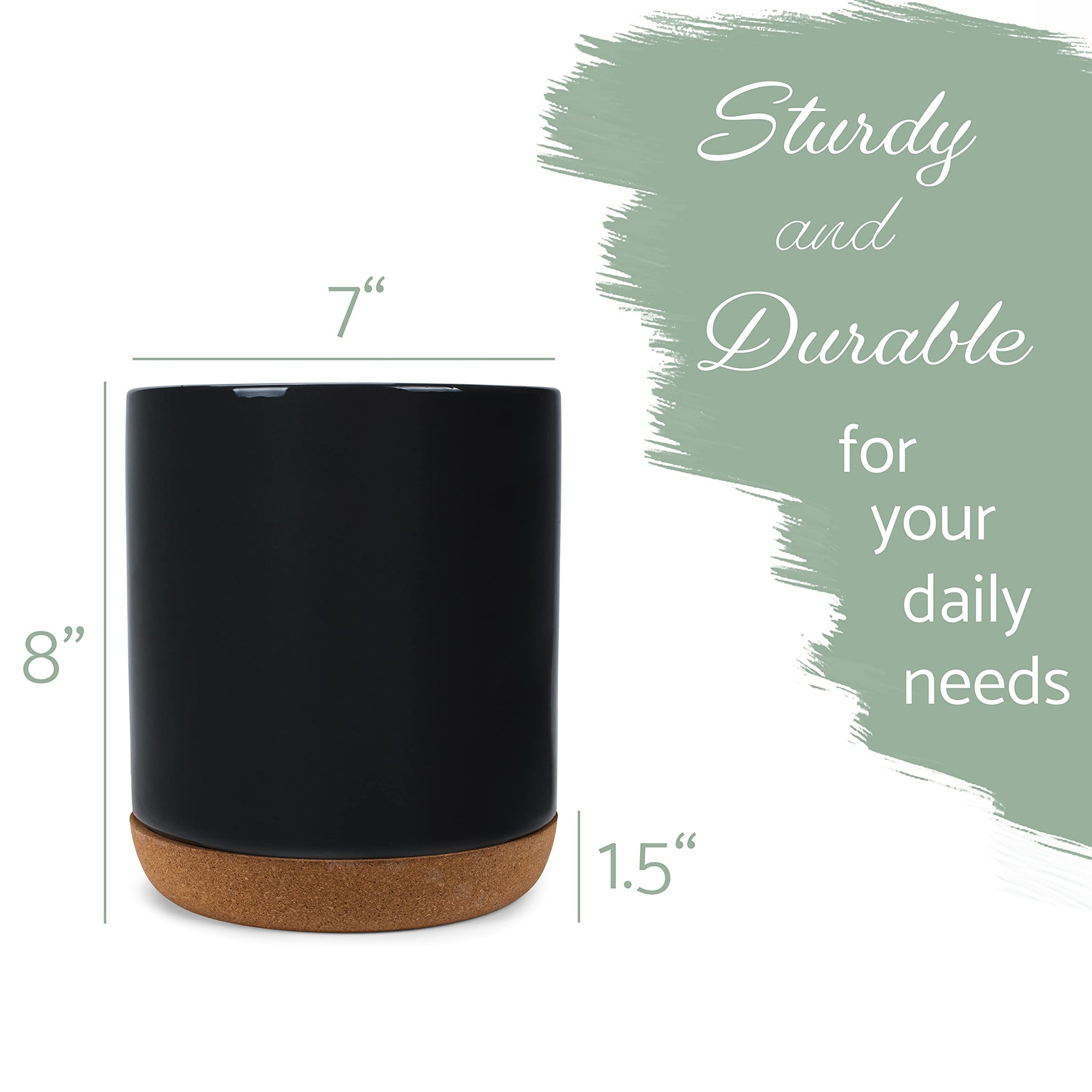 Elanze Designs Glossy X-Large Ceramic Stoneware Cork Bottom Kitchen Utensil Holder, Black