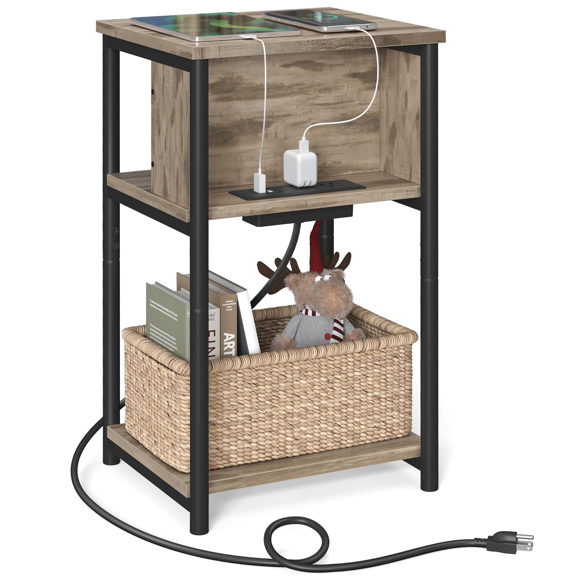 - [Side Table with Charging Station] With 2 AC outlets, 2 USB ports, and a 6.5 ft long cord, this end table allows you to charge your devices conveniently, so you don’t need to go looking for an outlet when your battery is low