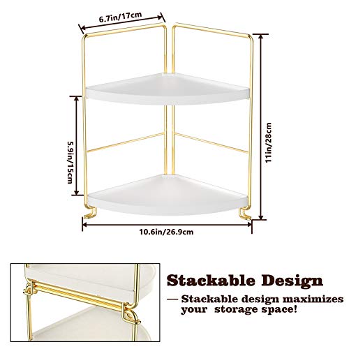 - STACKABLE STORAGE: Modern and simple Nordic style design, this storage rack can be matched well with most household style; One unit provides two levels of storage to let you store and organize creams, extra soap bars, hand lotion, face creams, hair spray, makeup, powder, perfumes, body sprays and other cosmetics; Items are always at the ready when you need them; Shelf is stackable to create vertical space-saving storage.