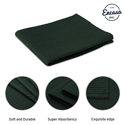 Encasa Homes Anti-Odour Waffle Kitchen Dish Towels, 28"x18" (4 Pc Set) Highly Absorbent, Tea Towels for Cleaning & Quick Drying, Cotton - Dark Green