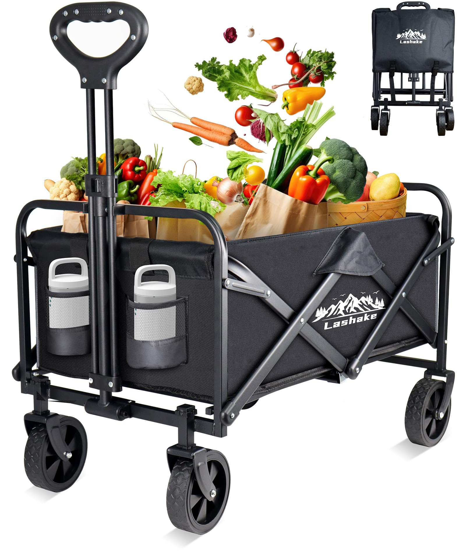 - Easy to install: Sets up in two minutes, No assembly required! Expand the Cart Frame, put the bag on the frame and Secure.