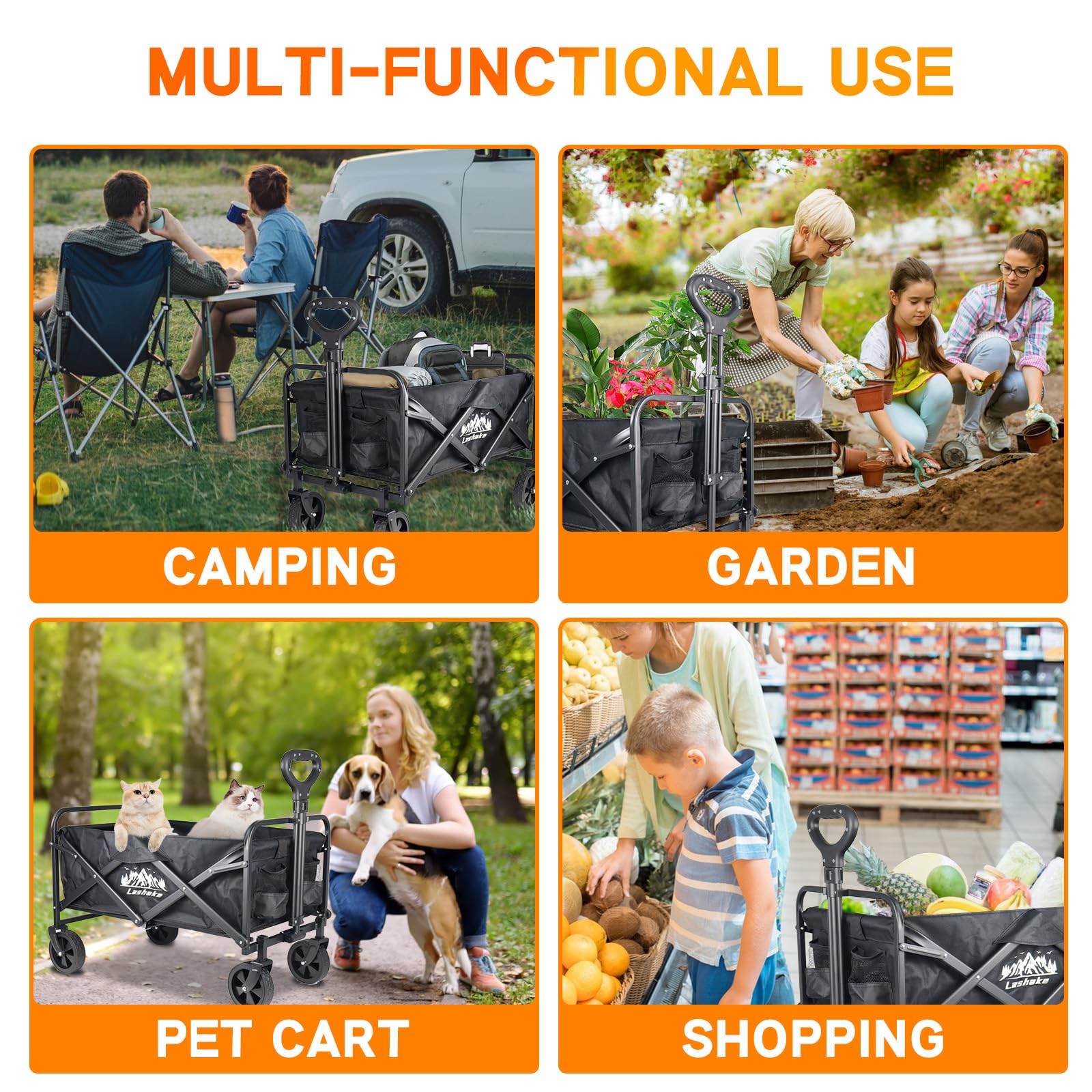 - Widely used: Perfect for outdoor, beach, sport, park, shopping, grocery, garden, fishing, camping and use around the house. Please note that it is NOT made to transport children.