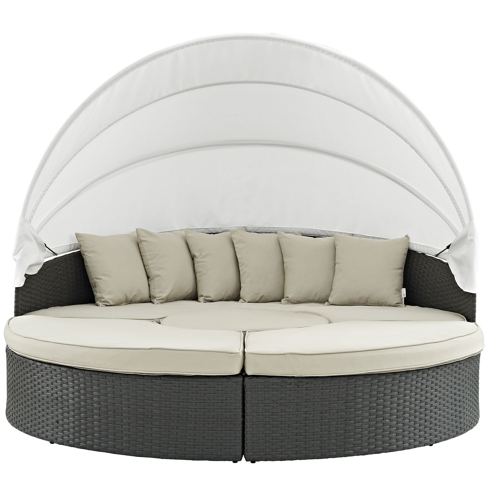 Modway Sojourn Outdoor Patio Sunbrella Sectional Daybed with Canopy in Antique Canvas Beige