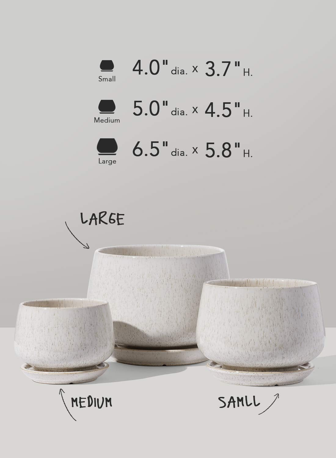 - 【Gathering All Three to Get A Garden】 Growing greenery doesn’t need a garden! This set of 3 house plant pots in various sizes bring cute succulents and blossoming begonias from your tabletop, bedroom, to larger backyard or out of doors patio. Dimension: large flower pot 6.5 inches in diameter and 5.8 inches in height. Medium plant pot 5.1 inches in diameter and 4.5 inches in height. Small pots for succulents 4.1 inches in diameter and 3.74 inches in height.