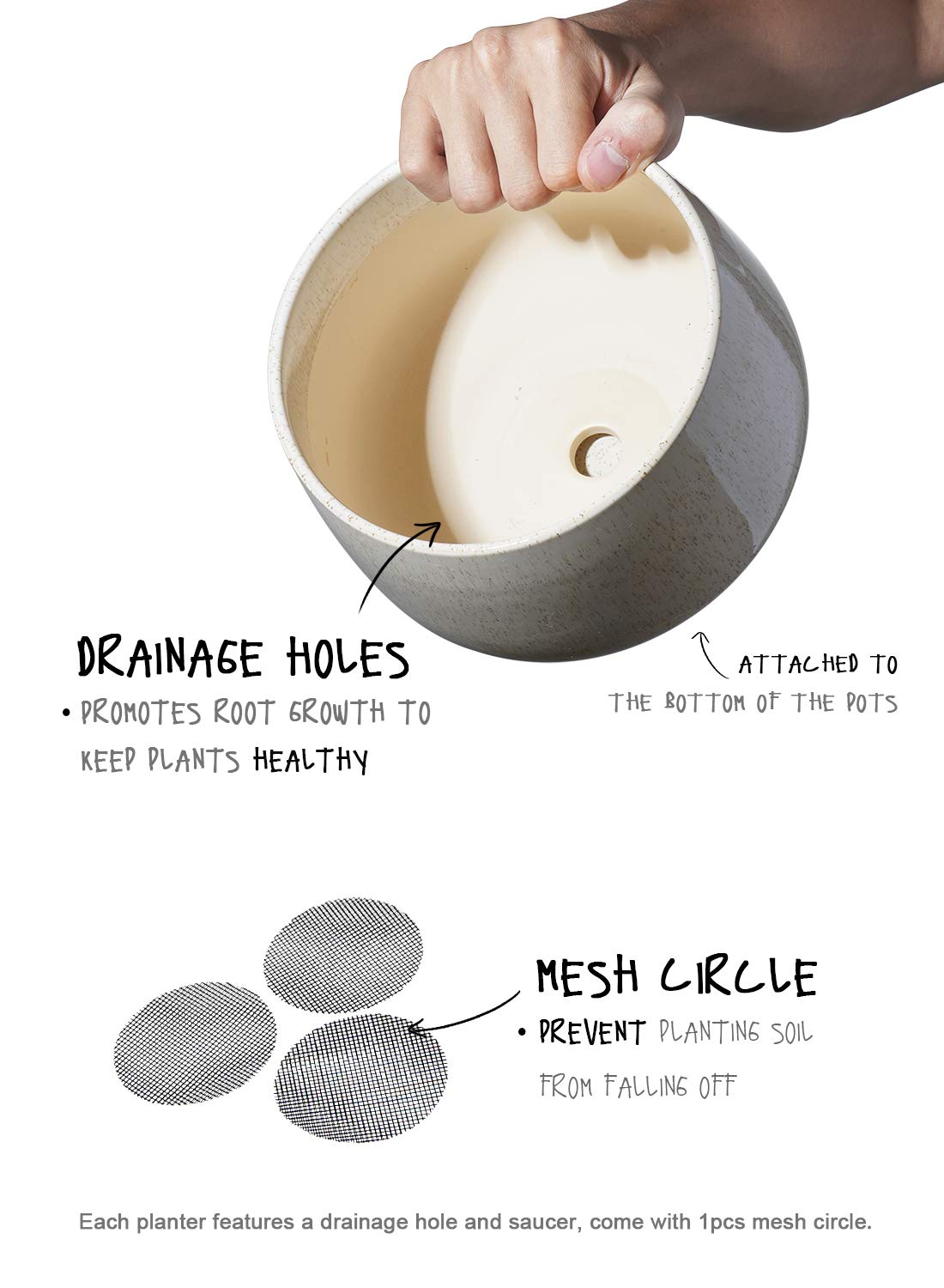 - 【Drainage Holes & Drip Pan & Drainage Net】The planter pot with drainage holes and saucers allows water to run off. Drainage net filters excess water out of the soil, and create a healthy living environment for your plant. No worries about over-watering your bonsai succulent! Drip Pan & Drainage Net are included. (*Plant is NOT Included.)