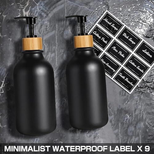 - ✅【Great Value Plastic Bathroom Accessories】Our black bathroom accessory set makes the bathroom in order and adds a boho, modern farmhouse element to match your bathroom perfectly. The matte black bathroom accessories include 2 pack bathroom soap dispensers and a toothbrush holder set, tip holder, cotton ball holder with bamboo lids, and 9 pre-printed water-proof stickers, making your life simple.