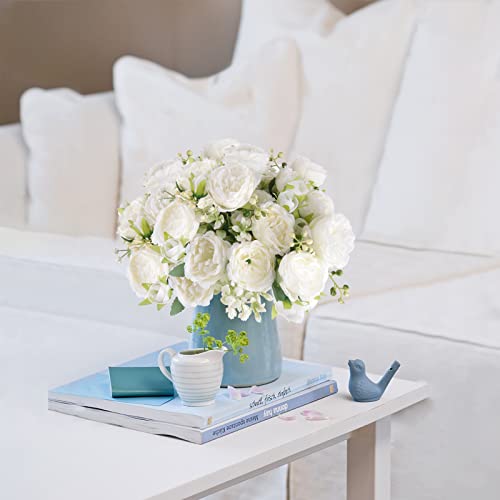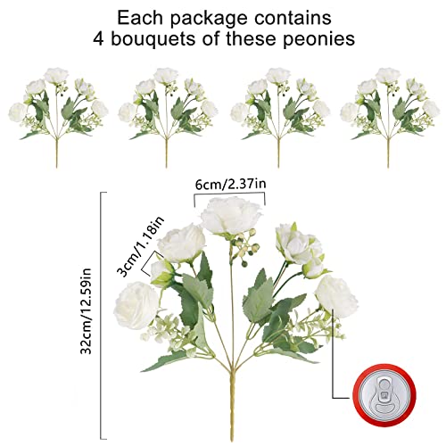 Artificial Peonies Silk Flowers, White Faux Peony Bouquet 4 Bundles Florals Arrangements Decor for Farmhouse Home Boho Wedding Table Centerpiece, Fake Plastic Flowers Bulk Vase Decoration (White)