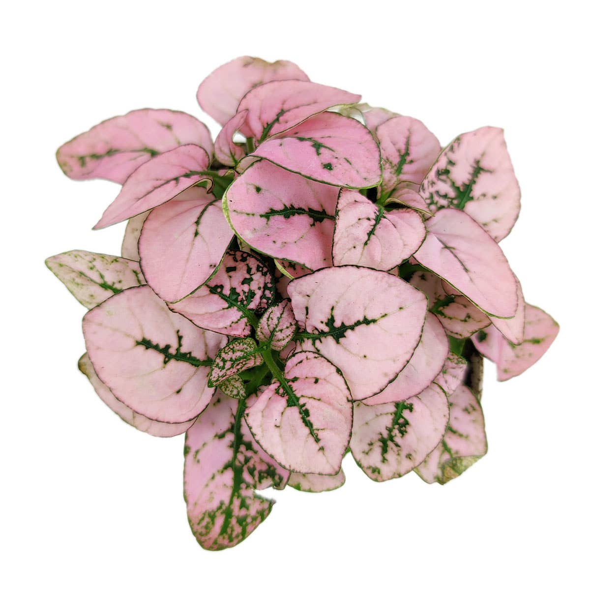 Hypoestes Phyllostachya Pink Splash, or Splash Select Pink Polka Dot Plant, a flowering plant species of the Acanthaceae family, is a popular "gift plant" because it has beautiful pointed leaves that remain white with distinctive dark green dots and pink/purple flowers at the nodes. Its lavender-colored flowers rise above the nodes, usually in the summer or early fall.