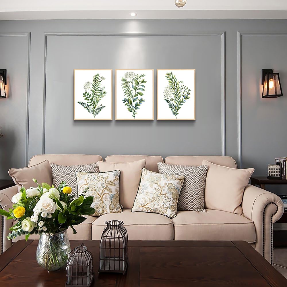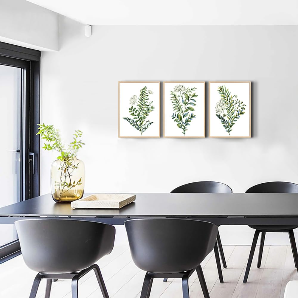 Color: 3 Panels Green Plants Natural Wood Framed