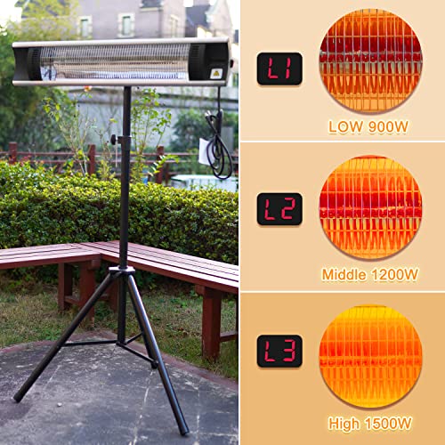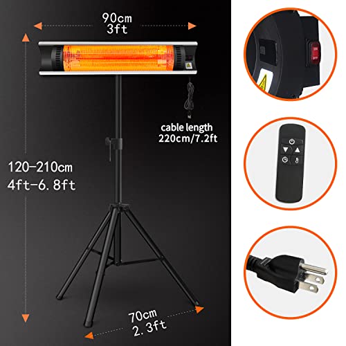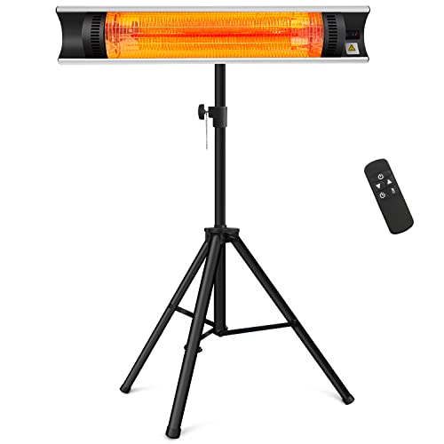 - Flexible Installation: Comes with hardware for mounting on walls or ceilings. Also comes with an adjustable tripod stand. Stand extends from 4 to 6.8 ft.You can enjoy the warm atmosphere immediately with this dual-use outdoor patio heater.Heating capacity: 18 m² (193.7 ft.²)
